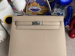 爱马仕z刻y刻 爱马仕凯莉包25寸图片 Hermes Kelly 25cm Togo 2S sesame 芝麻色 银扣 全手工蜜蜡线缝制