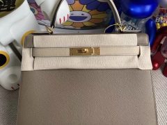 Singapore Hermes Kelly Bag 25 M8瀝青灰/4Z海鷗灰 Epsom皮 銀扣
