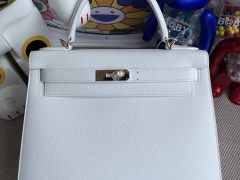 爱马仕官网凯莉包 Hermes Kelly Bag 28 Epsom CK10 Craie奶昔白 银扣