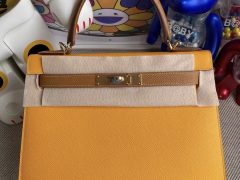 爱马仕包包官网 Hermes Kelly 28cm Epsom I9 Abricot杏黄色 金扣