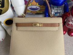 UK Britain Hermes Kelly 28cm Togo 外缝 10 Craie 奶昔白 /89 Noir 黑色 磨砂金扣 全手工蜜蜡线缝制 客定出