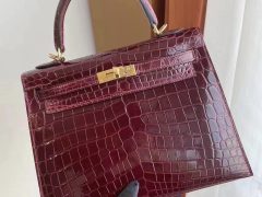 美国纽约华人资讯网 California USA Hermes Kelly 25cm CK57波尔多酒红美洲鳄鱼