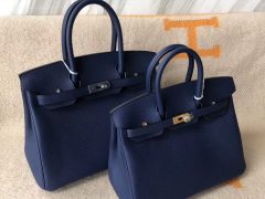 爱马仕铂金包价格及图片 Qatar Kuwait Hermes Birkin25 30cm大小对比参照图片 Epsom CK73 宝石蓝 Blue sapphire 金扣 银扣