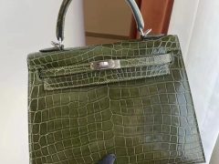 美国西雅图华人网 Seattle USA Hermes Kelly 25cm CK67祖母绿 Vert Fonce美洲鳄鱼