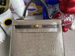 UK Britain Hermes Kelly 28cm 雾面方块 美洲鳄鱼 Matte alligator crocodile 89 Noir 黑色 银扣 全手工蜜蜡线缝制
