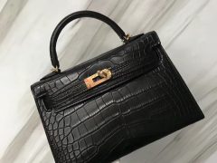 爱马仕马来西亚专卖店 Malaysia HERMES MiniKelly2代 CK89黑色 Shiny alligator crocodile 亮面方块美洲鳄鱼 全手工蜡线缝 金扣金属