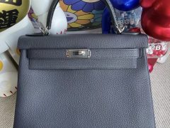 爱马仕凯莉包35价格 Britain Hermes Kelly 35cm Togo CC18 Etoupe 大象灰 金扣 全手工蜜蜡线缝制 客定出