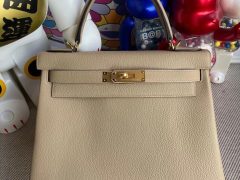 现货 Qatar Doha Hermes Kelly 25cm Epsom i2 Nata 奶油白 内拼 2S sesame 芝麻色 银扣 全手工蜜蜡线缝制 PHW Stock