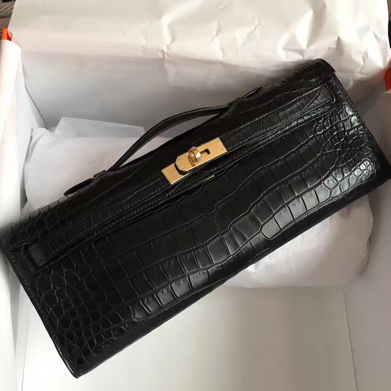 爱马仕 Hermes Kelly cut 31cm Matte porosus crocodile 雾面倒V鳄鱼 顶级工艺 全手工腊线缝 CK89黑色