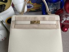 Canada Hermes Kelly Bag 28cm Epsom牛皮 CK10 Craie奶昔白 金扣