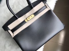 爱马仕铂金包图片价格Hermes Brikin 35 box牛皮黑色CC89内拼斑鸠灰CK81