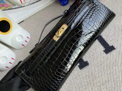 Hermes Kellycut 31cm CK67祖母绿 Vert Fonce 亮面倒V 野生湾鳄金扣