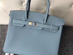 爱马仕铂金包颜色大全 爱马仕铂金包2020年最新颜色 New York USA Hermes Birkin 25cm Togo 7G Ciel 天青色 全手工蜜蜡线缝制