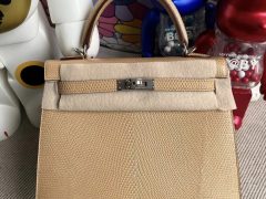 爱马仕包包官网旗舰店 Hermes Kelly 25cm 81 Gris Tourterelle Lizard 原装进口蜥蜴皮 银扣 PHW 全手工蜜蜡线缝制 客定出