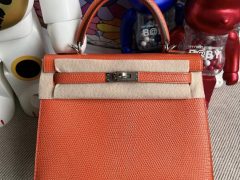爱马仕包包官网价格和图片 Hermes Kelly 25cm 14 beige 杏色 Lizard 原装进口蜥蜴皮 银扣 PHW 全手工蜜蜡线缝製 客定出