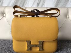 爱马仕空姐包包Hermes Constance 24cm 御用kk 南非鸵鸟皮 9D琥珀黄 金扣