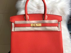 Dubai Hermes Birkin 30 Epsom CK18大象灰内拼 S5番茄红 拉丝金扣