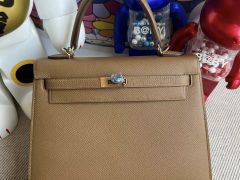 Hermès Kelly 25cm handbag size HSS Epsom L5 Crevette 龙虾粉+10 Craie 奶昔白 金扣 GHW 全手工蜜蜡线缝制 In Stock