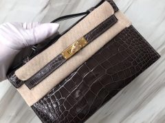 愛馬仕手拿包鱷魚皮 Hermes MiniKelly Pochette壹代22cm CK88石墨灰 Graphite 亮面方塊 美洲鱷魚 Shiny alligator crocodile 銀扣金屬 全手工蜜蠟線縫制