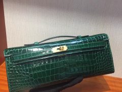 Hermes Kellycut 31cm CK67祖母绿 Vert Fonce 亮面倒V 野生湾鳄金扣