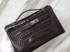 鱷魚皮愛馬仕包包價格 Hermes MiniKelly Pochette壹代22cm CK88石墨灰 Graphite 亮面方塊 美洲鱷魚 Shiny alligator crocodile 銀扣金屬 全手工蜜蠟線縫制