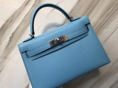 Hermes MiniKelly Pochette 22 P3北方蓝Blue de nord Epsom 银扣
