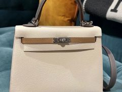 爱马仕官网凯莉包 Hermes Kelly Bag 28 Epsom CK10 Craie奶昔白 银扣