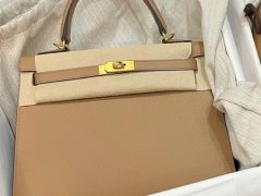 Hermès Epsom Kelly 25CM i2 奶油白 nate + 左右 扣带 0M Chai 玛萨拉茶色+肩带 手柄 颜色 0L Gris Meyer 积雨云灰 全手工蜜蜡线缝制 All hand sewing 接受定制