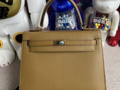 Saudi Arabia Dammam Hermès Kelly 25cm Chevre Mysore 进口山羊皮 18 Etoupe/2Z Blue nuit Brushed gold hardware