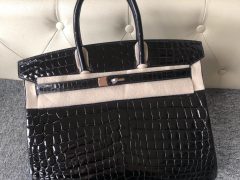 Hermes Birkin 25cm 7W Blue Izmir 伊兹密尔蓝 Shiny porosus crocodile