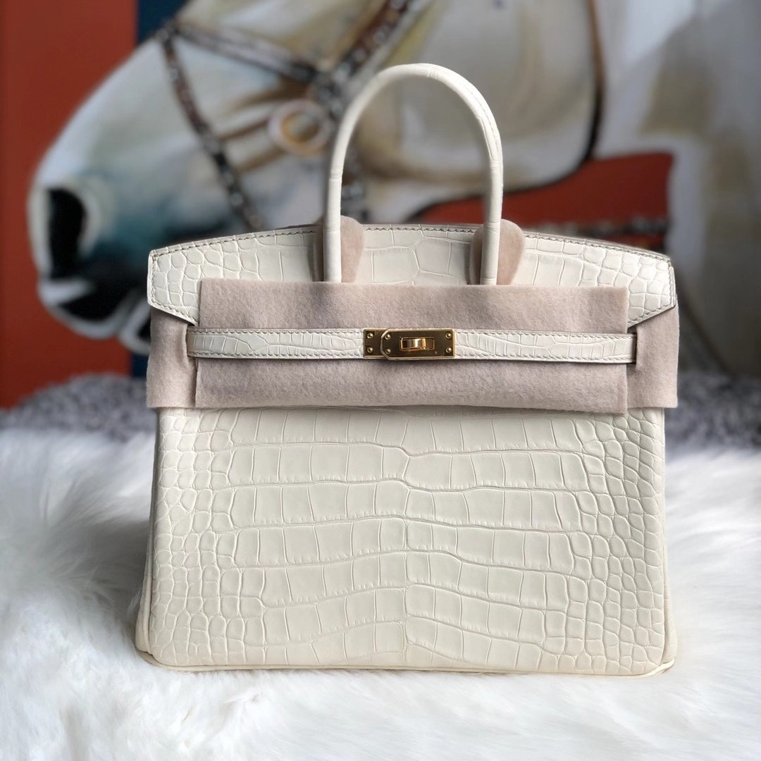Qatar Doha Kuwait Hermes Birkin 25cm 雾面方块 美洲鳄鱼 Matte Mississippiensis alligator 8L Beton 奶油白 客定出货 Customer Customized