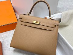 爱马仕包包官网 Hermes Kelly 28cm Epsom I9 Abricot杏黄色 金扣