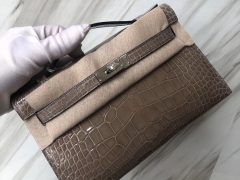澳门爱马仕专卖店(永利度假酒店)| Hong Kong Hermès MiniKelly 22cm pochette 亮面方块 美洲鳄鱼 Shiny alligator crocodile CK81斑鸠灰 Gris Tourterelle 金扣 全手工蜡线缝制