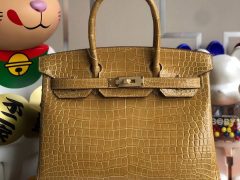 Hermes Birkin 30cm ck47 chocolate 巧克力色 亮面倒V 澳洲湾鳄 Shiny Porosus Crocodile 全手工蜜蜡线缝制 银扣 原厂五金