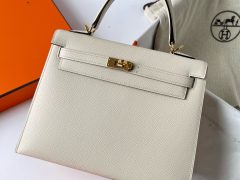 Hermès Special Order (HSS) Kelly Sellier 25CM 10 Craie 奶昔白 and 18 Etoupe 大象灰 Epsom Golden Hardware