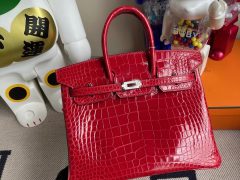 爱马仕铂金包价格及图片 Hermes Birkin 25cm 亮面方块美洲鳄鱼