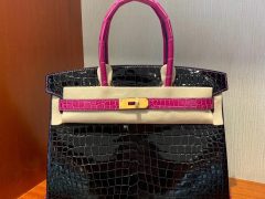 爱马仕铂金包工匠号 2021年 Z刻 Hermes Birkin 25cm Touch CC89 Noir 黑色 Togo 拼 雾面方块 美洲鳄鱼 Matte alligator crocodile 金扣 全手工蜡线缝