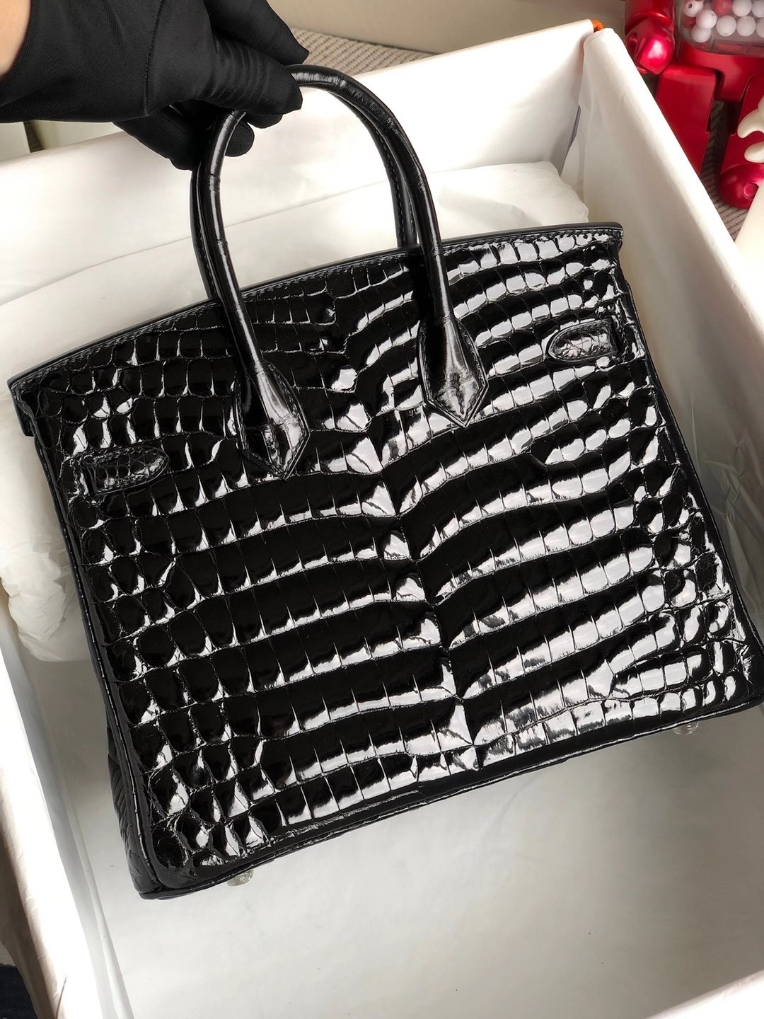San Francisco USA Hermes Birkin 25cm 亮面尼罗供珠鳄鱼 Shiny nilo crocodile CK89 Noir 黑色 金扣 银扣 现货