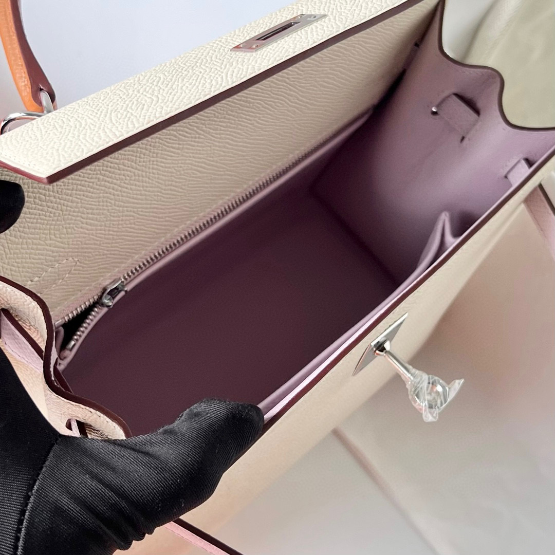 Dubai Hermès Kelly 25cm Epsom CK10 Craie 奶昔白/09 Mauve Pale 梦幻粉紫/CK37 gold 金棕色 silver hardware