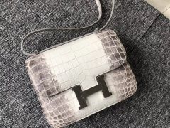 苏州 爱马仕康斯坦包价格及图片 Hermes Constance 26cm 亮面两点 尼罗鳄鱼 Shiny nilo crocodile 1P鸭子蓝 Blue Colvert 玫瑰金扣 客定出货