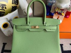爱马仕铂金包2020年刻印 Y刻 爱马仕铂金包价格图片及价格 Hermes Birkin 30cm Epsom 3I Vert Criquet 牛油果绿 蟋蟀绿 全手工蜜蜡线缝制 金扣