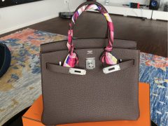 爱马仕2021年刻印 Z刻 爱马仕铂金包价格图片 Britain Hermes Birkin 25cm Chevre Mysore 山羊皮 CK46 Ebene 乌木色 银扣 全手工缝制