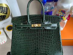 Vietnam Hanoi Hermes Birkin 25cm W0 Vert Bosphore Shiny porosus crocodile