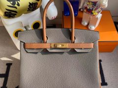 Dubai Hermes Birkin 30 Epsom CK18大象灰内拼 S5番茄红 拉丝金扣