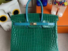 Hermes Birkin 25cm 7W Blue Izmir 伊兹密尔蓝 Shiny porosus crocodile
