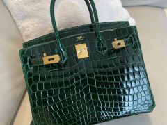 深圳广州爱马仕鳄鱼铂金包手工制作定制 价格多少钱一只 Hermes Birkin 30cm crocodile CK47 Chocolate 巧克力 全手工蜜蜡线缝制 Gold clasp 金扣