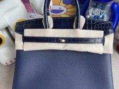 Hermes Birkin 25cm 7W Blue Izmir 伊兹密尔蓝 Shiny porosus crocodile