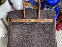 Hermes Birkin 35cm Ostrich Ghillise 鸵鸟皮蕾丝边三拼色 巧克力色/大象灰/深咖啡 金扣