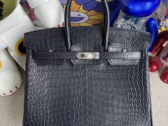 Hermes Birkin 25cm 7W Blue Izmir 伊兹密尔蓝 Shiny porosus crocodile