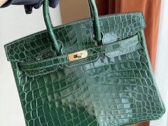 Vietnam Hanoi Hermes Birkin 25cm W0 Vert Bosphore Shiny porosus crocodile